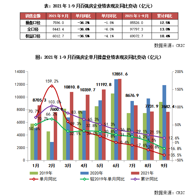 业绩:百强房企9月单月业绩不及8月同环比双降