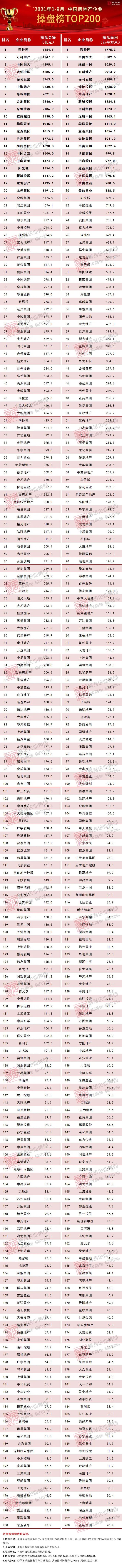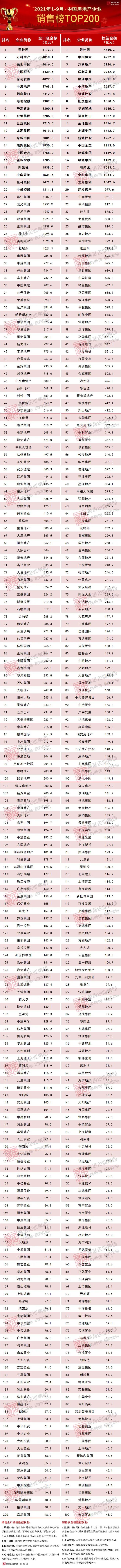 2021年1-9月中国房地产企业销售TOP200排行榜