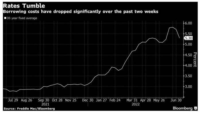 数据显示,过去六个月,美国30年期固定抵押贷款利率从3.1%升至5.3%,中途一度达到5.8%的峰值,创下2009年以来的历史新高。