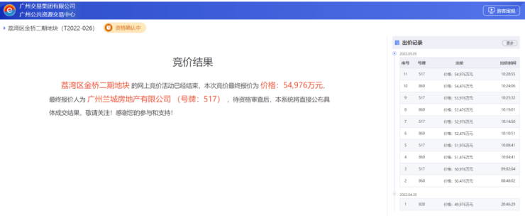 荔湾区金桥二期地块同样受到多家房企争抢,经过11轮竞价后,最终为广州兰城房地产有限公司夺得。