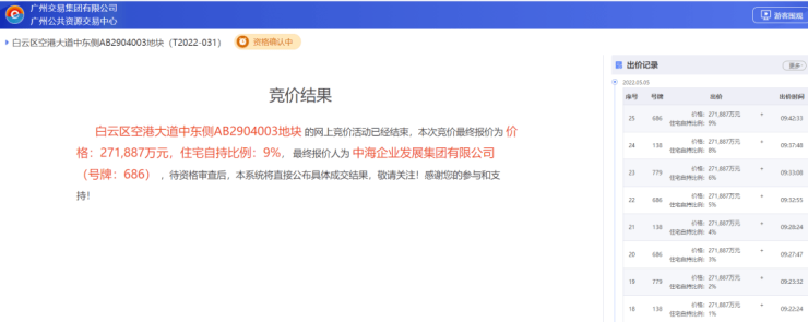 越秀地产、广州市政均夺得两宗地,其中前者拿下南沙区2022NJY-3亭角地区(原梅山工业区)地块、白云区广龙路AB0805104地块。