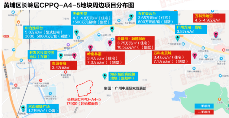 再看黄埔区长岭居CPPQ-A4-5地块,占地72225㎡,容积率为2.0,计容建面144450㎡,整体定位为板块的低容积率轻奢宅地,未来产品规划设计倾向与大面积洋房和别墅。
