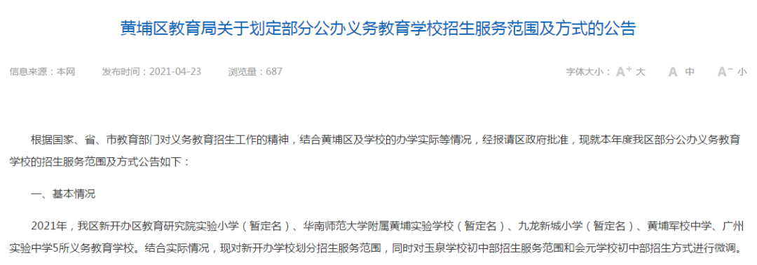 黄埔今年将新办5所义务教育学校!招生范围定了 →