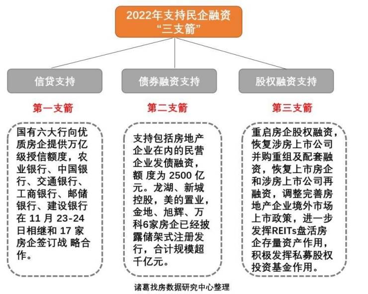 11月28日,证监会表示,即日起将恢复涉房上市公司并购重组及配套融资、恢复上市房企和涉房上市公司再融资、调整完善房地产企业境外市场上市政策。至此,“第三支箭”正式落地。