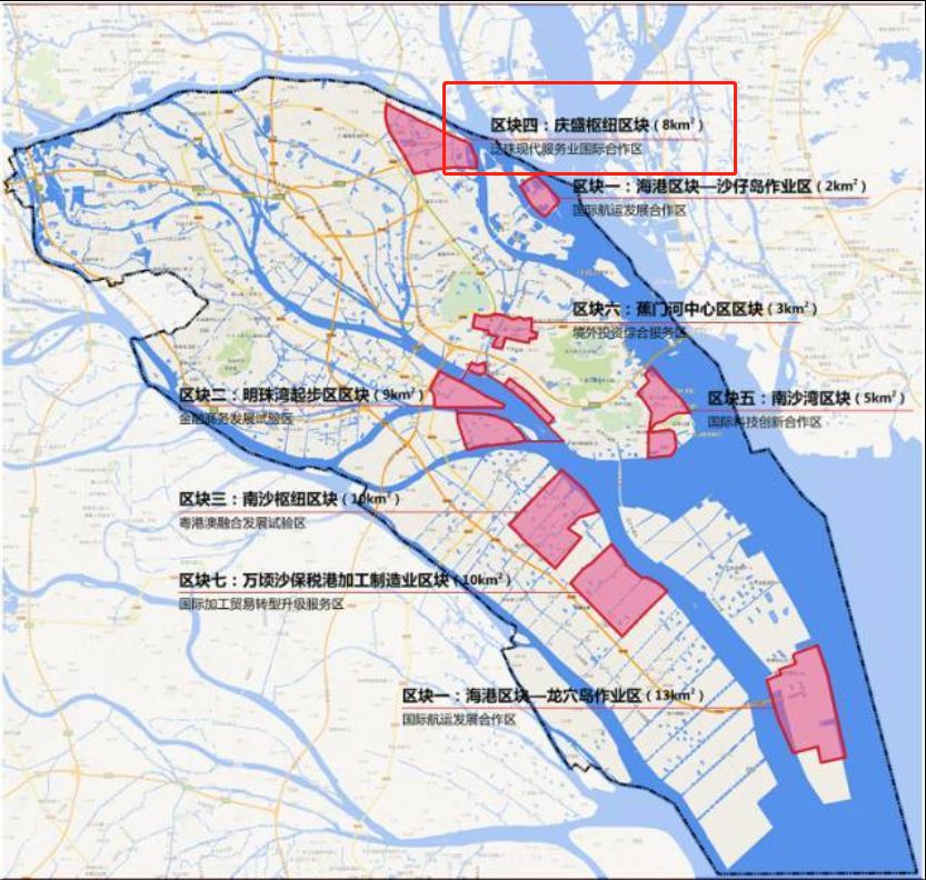 根据公示的环境影响报告书显示,庆盛枢纽区块的功能定位为:粤港澳大湾区重要的科技创新节点、国际智慧创新城、人工智能产业引领示范区,南沙新区北部组团中心。南沙新区庆盛枢纽区块位于广深港客运专线与广中珠澳城际轨道(规划)交会处,是南沙自贸片区的重要组成部分,也是南沙新区两大轨道交通枢纽之一。