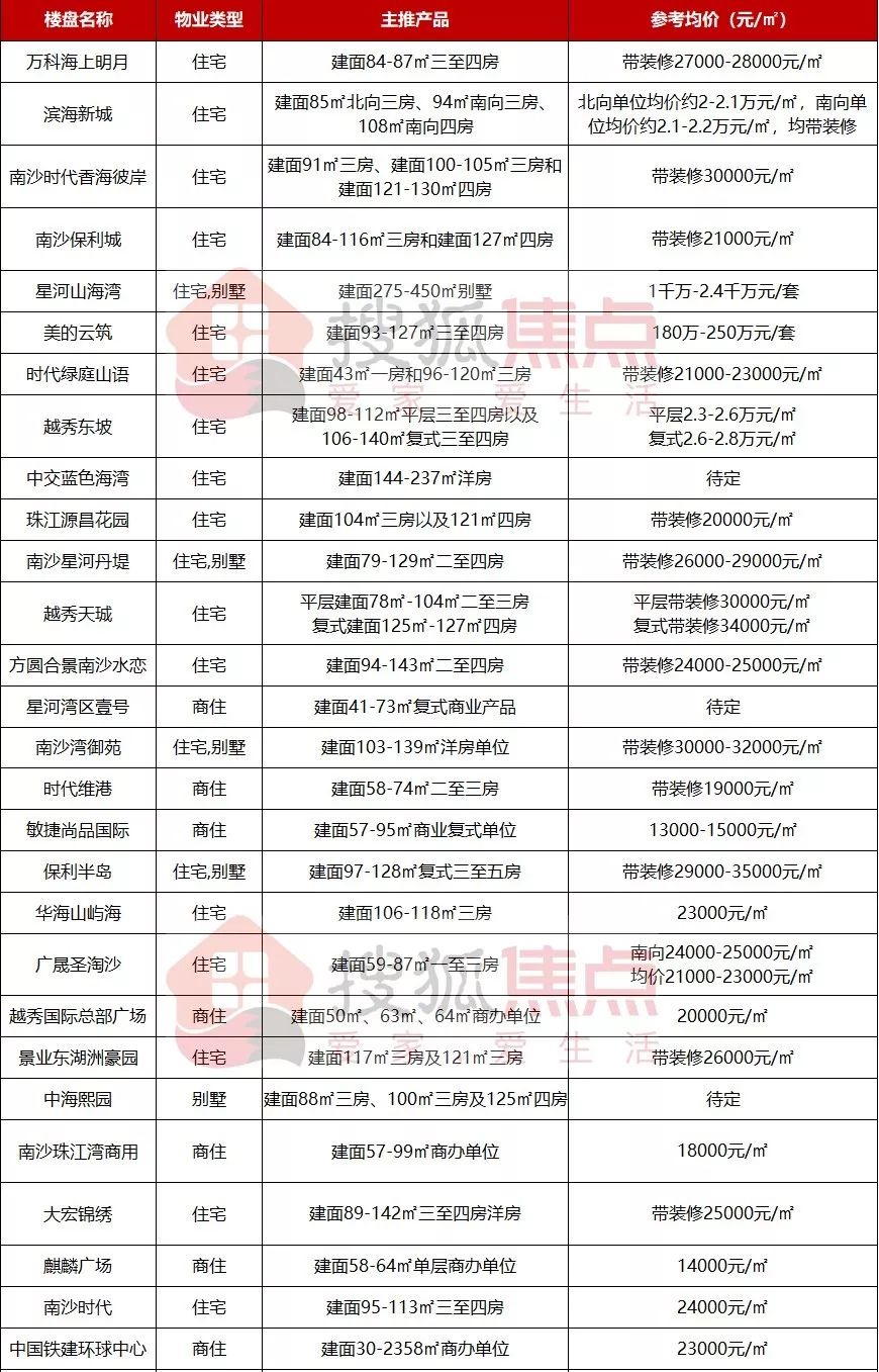 所以,在市区房价高企、南沙楼市坚挺的大背景下,其还是能较好地满足“刚需自住、长线投资”的需求。但还值得一提的是,在当下“房住不炒”的总基调下,投资还是得看准楼盘再出手哦。最后附上部分南沙在售楼盘产品、价格情况——