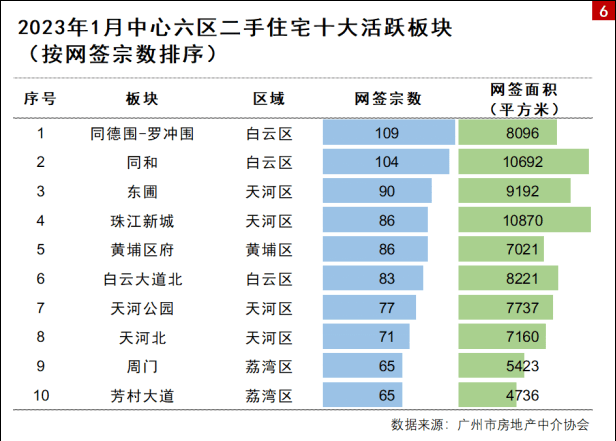 值得关注的是,在十大活跃板块中,多数板块活跃度环比逆市增长,其中同德围-罗冲围板块、同和板块和东圃板块位列三甲,网签宗数环比分别增长17.20%、55.22%和34.33%;周门板块和芳村大道板块关注度亦明显提升,网签宗数环比分别增长30.00%、51.16%;白云大道北板块和天河公园板块网签宗数环比增长幅度相对较小,分别为15.28%和6.94%。而珠江新城板块和天河北板块均高位回落,网签宗数环比分别下降27.73%和7.79%,黄埔区府板块网签宗数环比下降24.56%。