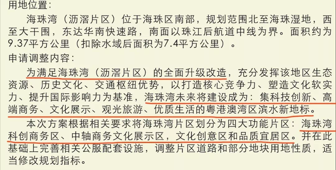 规划内容明确提到,为了满足海珠湾(沥滘片区)的全面升级改造,海珠湾未来将建设成为:集科技创新、高端商务、文化展示、观光旅游、优质生活的粤港澳湾区滨水新地标。