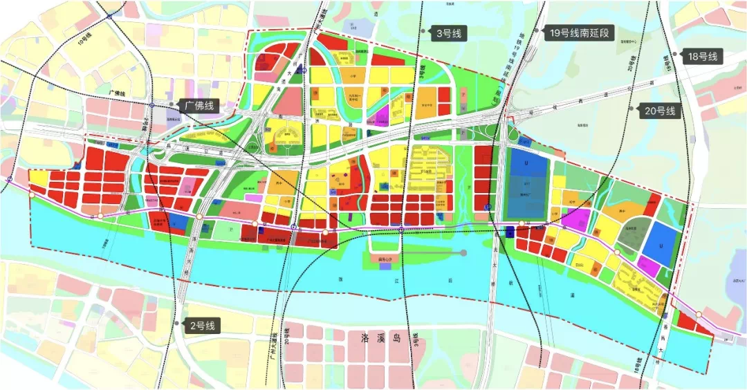 交通规划方面,地铁广佛线、2号线、3号线、18号线、19号线(南延线)、20号线都在该片区穿行而过。
