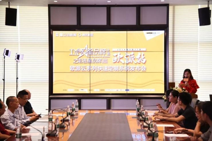 下午14时,发布会正式开始,排名前列邀请了中国建材市场协会卫浴分会秘书长刘文贵上台致辞:很高兴受邀来到欧派卫浴总部,今年整个卫浴行业是处于紧张情况,欧派卫浴作为行业发展讯猛的品牌,但欧派仍然保持亮眼成绩,无论是招商还是销售都保持高速增长,这有赖于欧派卫浴不忘初心,砥砺前行,不仅在行业树立了崭新的标榜,也在努力地为卫浴发展提供自身的力量,相信今天的欧派云系列快速定制系统发布会的结束,会真正的将“有家,有爱,有欧派”的核心理念落实到位。