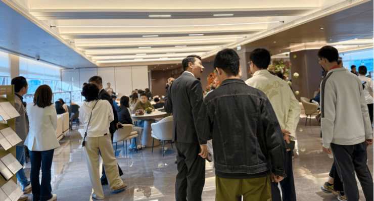 尽管广州的冬日早晚略显凉意,但珠江新城的豪宅市场一片火热。上午9:30,笔者抵达凯旋新世界T25栋的广粤尊府体验馆,发现这里早已人声鼎沸,访客们排起长队,等待搭乘电梯前往四楼的销售接待中心。
