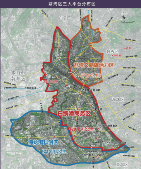 海龙围科创区总面积22平方公里,位于粤港澳大湾区广佛极点核心区,是科技创新主引擎、产业升级主战场,被纳入广佛高质量发展融合试验区先导区启动区,将与广州番禺、佛山等共建万亿级产业集群。荔湾将在此释放大量高附加值土地,大力发展都市工业,推动工业上楼,引入科技创新龙头企业,力争到2025年建成一个集聚高端要素、高附加值的产业平台。