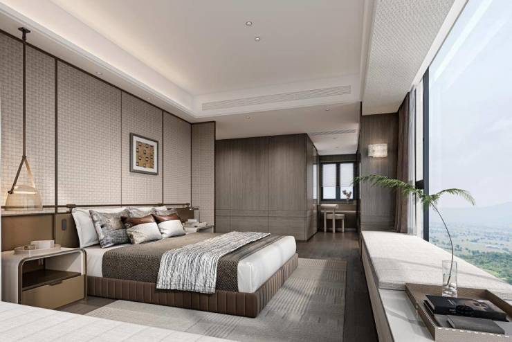 其中主卧建面40㎡南北对流大主卧,让主卧生活更有延展性,配置步入式衣帽间以及270°全视野瞰景飘窗,拥有总统套房的既视感。