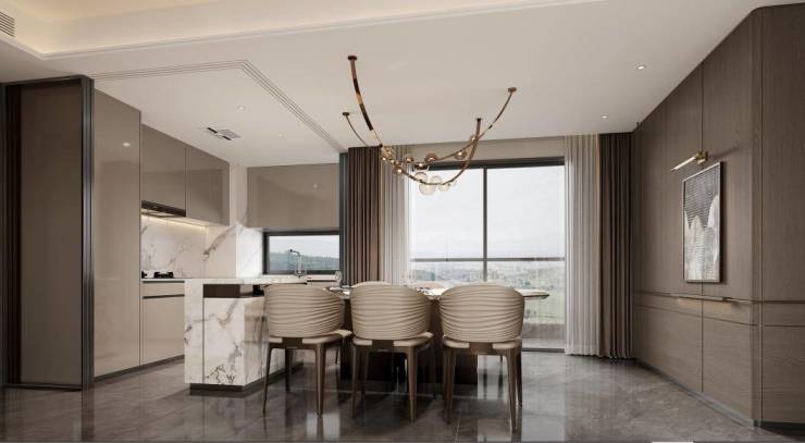 餐客一体连接南北多功能双阳台,汇通中西双厨房,深刻考虑到菁英人士归家的日常所需,让家庭成员处于同一视线区域,实现全家更多的情感互动;星级套房式主卧配置步入式衣帽间,同时还有270°全视野大飘窗,推窗沐浴四季阳光,远眺四时美景。