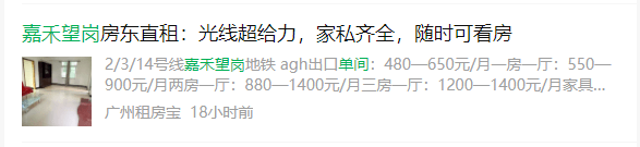 据各大网站上的租房数据以及中介透露,目前嘉禾望岗稍旧、离地铁 1 公里外的普通民房,单间 450-600 元、一房一厅600-800 元、两房一厅900-1200 元。