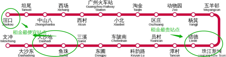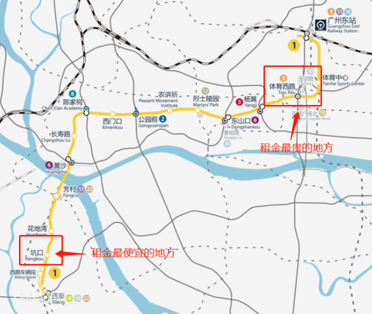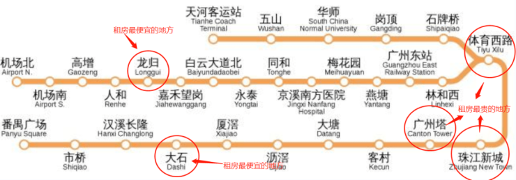 除以上两个地方之外,血拼哥按照地铁线路给大家划分了租房最贵和最便宜的地方,大家可以参考一下。