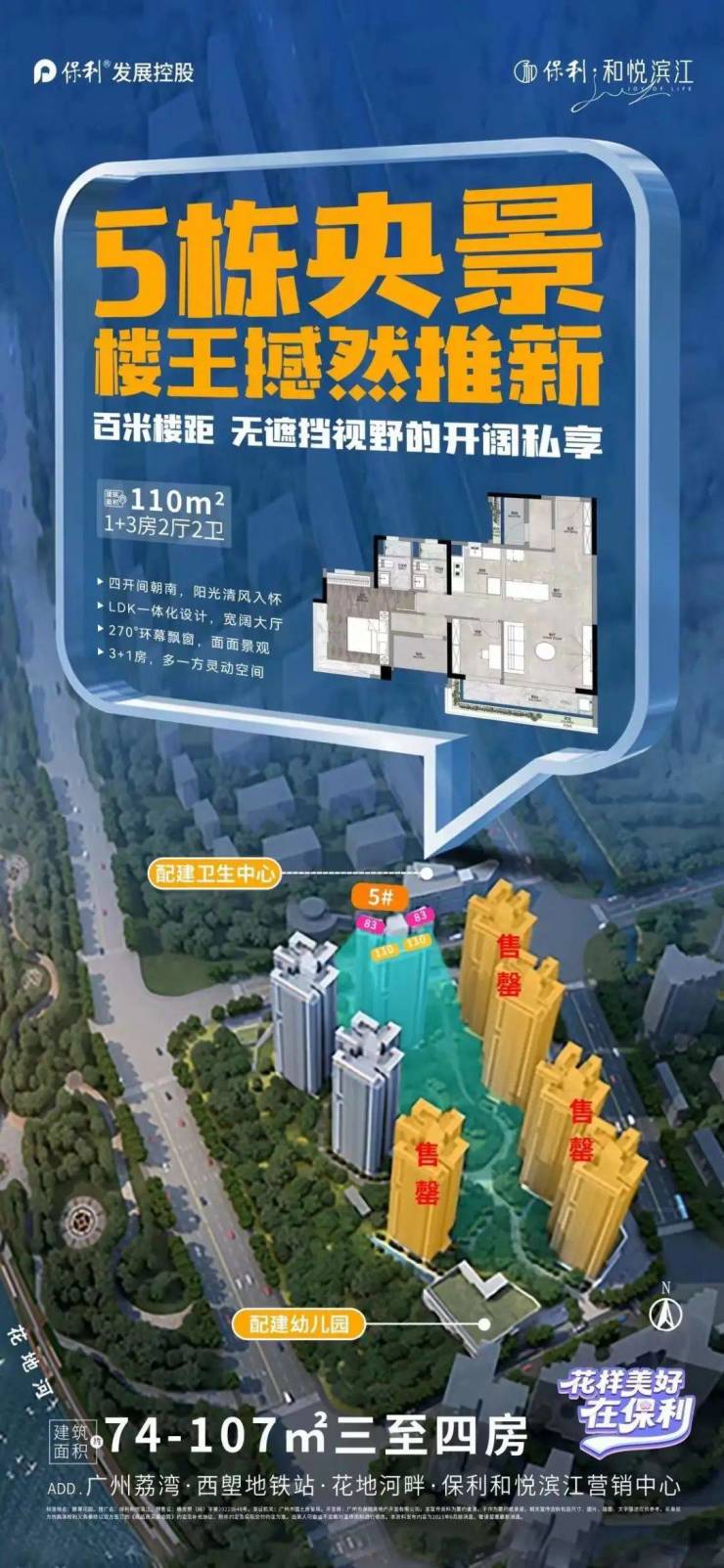 保利和悦滨江位于荔湾西塱TOC核心地段,距1号线西塱地铁站约800米,享受四地铁汇聚的便捷交通利好,距花地河仅160米,部分高层户型还能享受花地河河景。