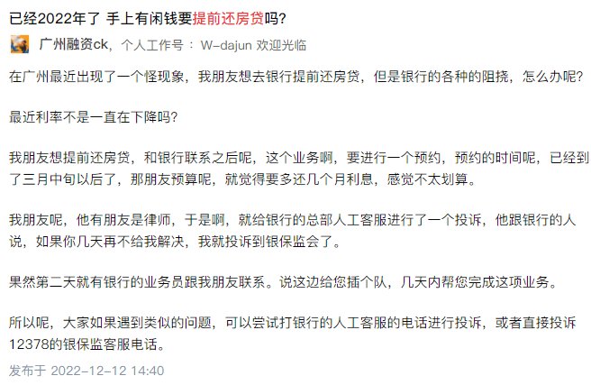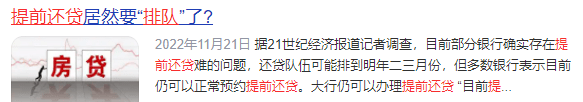 银行提高“提前还贷”门槛,大家耐心排队。这一现象在2022年底就已出现。