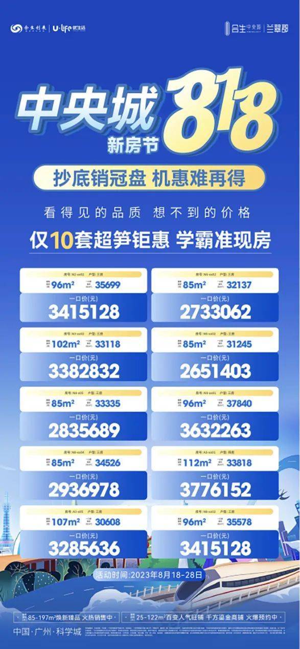 据悉,合生中央城本周加推F7栋,产品户型为115㎡户型,同时,推出10套特价房源,总价265万买下三房。