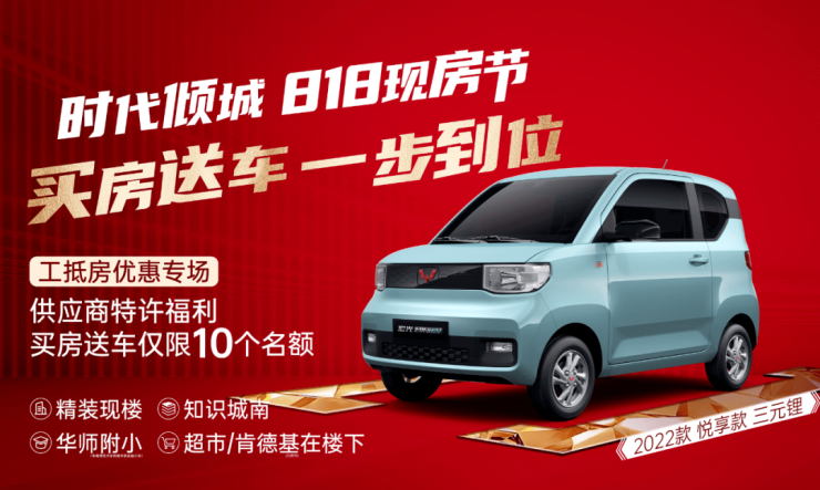 项目是一个准现楼大盘,公立幼儿园和华师附小(已开学)就在家门口。顺势818,项目推出“现房节”,首付8.8万起,便可上车。