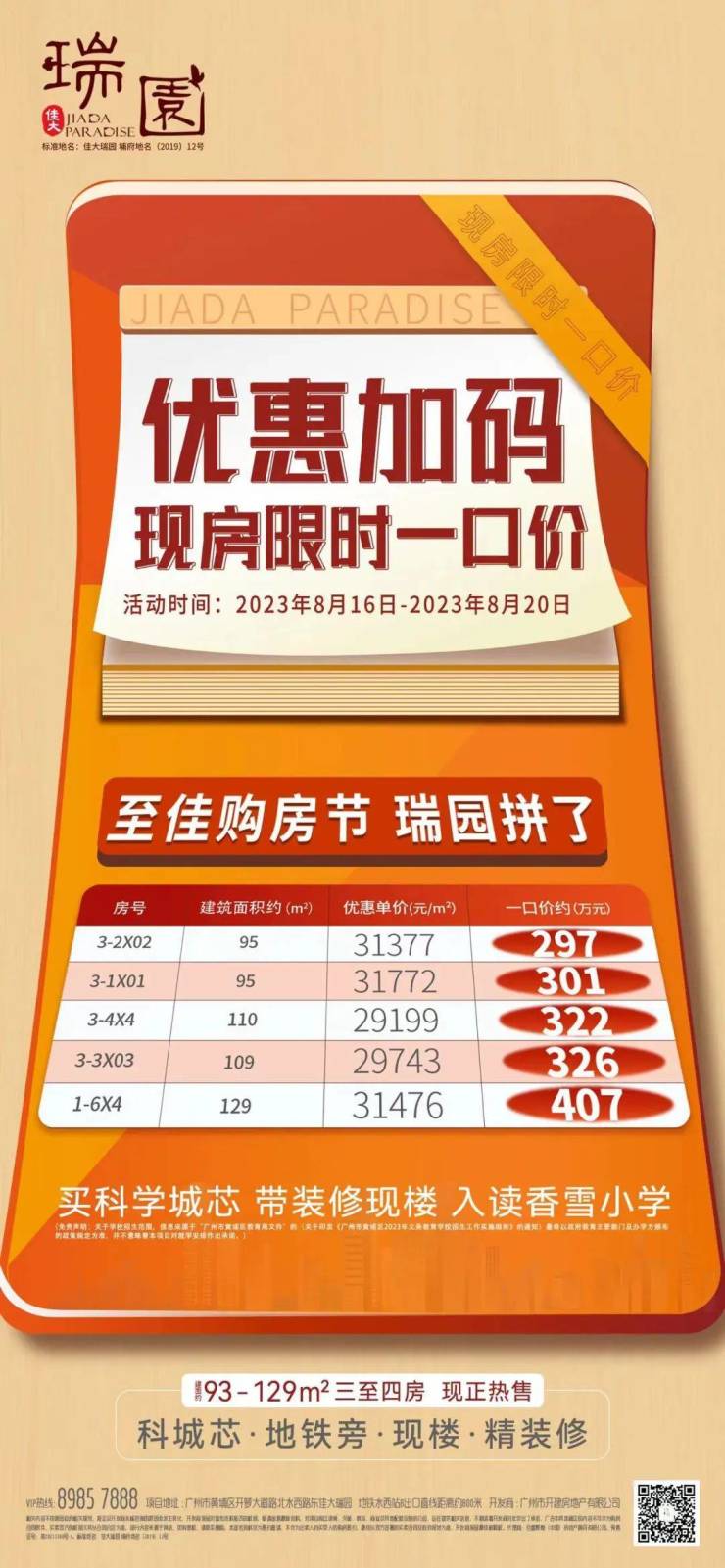 该项目紧邻黄埔区府,雄踞科学城主脉,万亿多元业态统统从此向外扩散,商业、医疗、交通、教育起步并进,优质生活资源一站式享受。其主推的建面约93-129㎡精装三四房,已是现楼状态,均价仅三字头,首付百万左右即可拿下正规三房。