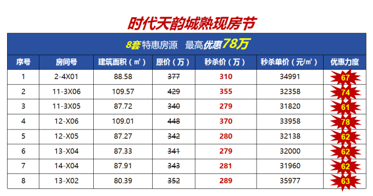 顺势818,时代天韵推出8套钜惠房源,最高省78万,诚意满满!