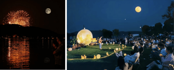 古风快闪热闹表演,中秋经典环节水晶月饼手作、猜灯谜自不可少。等月色盛开,花厅坊双塘古树边,「月满秋韵」中秋专场烟花音乐嘉年华珊珊而来,乐队演奏响起,电子烟花绽放,现调鸡尾酒微醺中,尽享月圆花厅古韵。