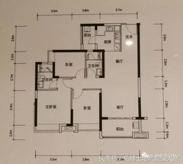 按照惯例,先上户型图。户型方正,主卧朝南,有一个卧室窗户朝西,下午阳光西晒会比较热。厅直出南向阳台。下图为室内实景图。