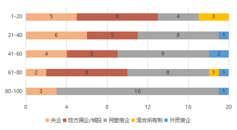 从典型房企所有制观察,国资背景合计46家,较上年增加6家,数量上已连续3年增加。近期,部分民营房企已逐步出清风险,另外一些地方中小型民企凭借较低的负债水平稳健发展,预计随着市场的逐步企稳,民营房企的占比或将有望提升。