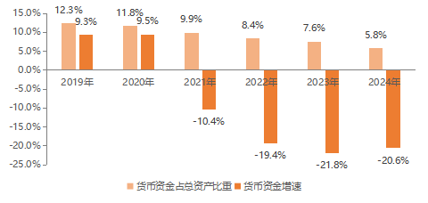 图:典型上市企业货币资金占总资产比重及增速均值变化