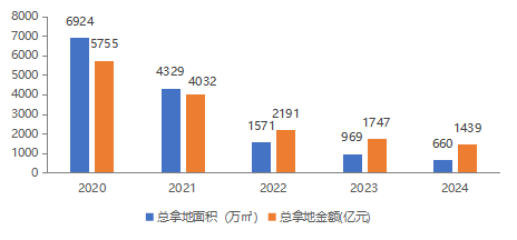 图:典型代表性房企2020—2024年拿地总量变化情况