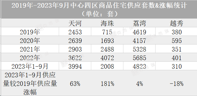 一直以来荔湾区作为中心四区的供应大户,特别是今年1-9月荔湾的供应总量是海珠区供应总量的2.4倍。