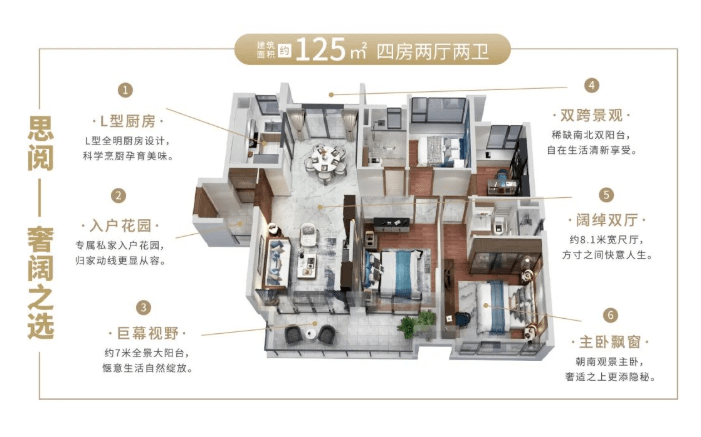 改善型四房,则是用场景升级来打动这一类型的客户。阔绰的空间,别出心裁的设计,将带来更好的居住舒适度和体验感。