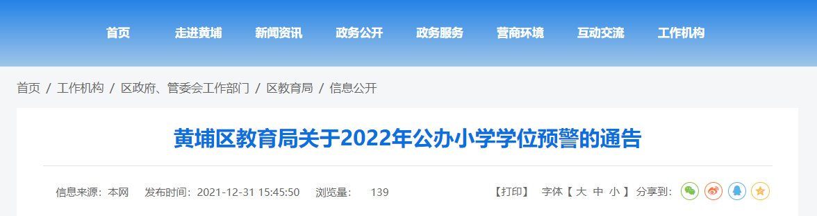 黄埔区教育局关于2022年公办小学学位预警的通告