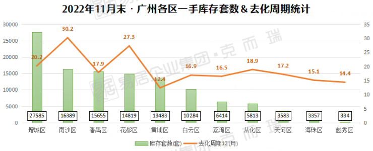 11个区的去化周期皆高于12个月,从化、增城、南沙、花都等外围区域更是“大亮红灯”。