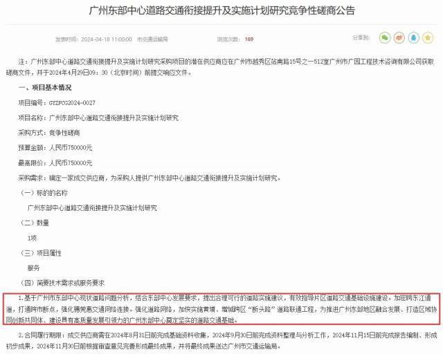 值得一提的是,今年2月,广州市规划和自然资源局发布了《东部中心重大交通设施详细规划》招标。
