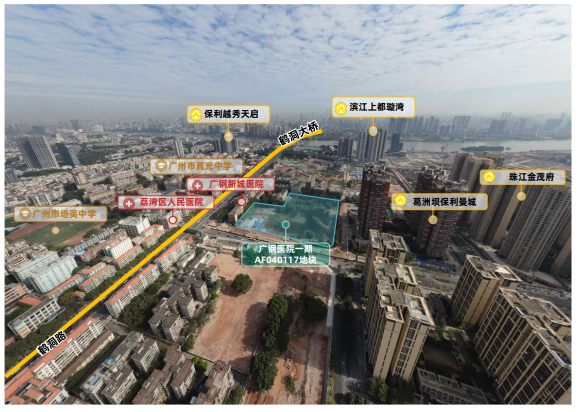 周边临近葛洲坝保利曼城、滨江上都璇湾、珠江金茂府、保利海郡花园等小区,且配套齐全,涉及荔湾小学、广州市培英中学、广钢新城医院、荔湾区人民医院等。