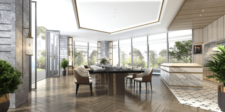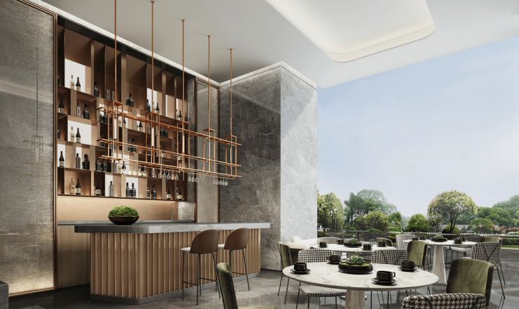 其一,项目打造了9.8米的挑高大堂,还搭配了定制木材铝板,将新加坡等的豪宅“室内空间室外化”的理念贯穿其中。