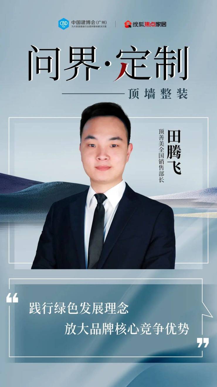 锁定顶墙整装的核心竞争力,共筑绿色高质量发展之路。近期,中国建博会(广州)联合搜狐家居推出《问界·定制》-顶墙整装专访栏目,走进优秀顶墙企业,全方位展示顶墙行业强劲生机与活力。本期专访走进顶善美集成吊顶,对话顶善美全国销售部长田腾飞,围绕产品创新、环保升级、一体化整家等行业热点问题,探寻行业高质量发展路径。