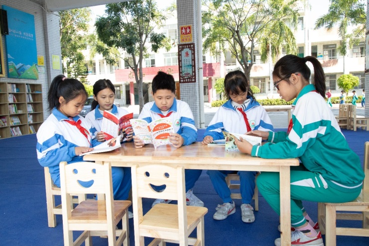 及各界社会爱心人士来到了2021年融创华南英苗培养计划排名前列站——台山海宴中心小学,精心挑选了千余册书籍为海宴中心小学搭建了一个“英苗书屋”,传递知识的力量与温暖。