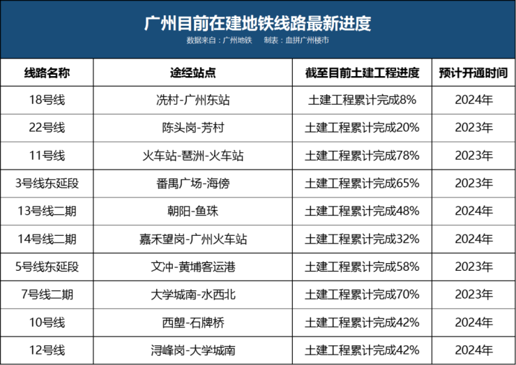 据广州地铁消息,10条在建线路建设较新进展出炉啦。