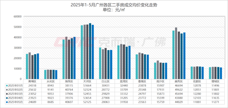 克而瑞数据监测显示,5月广州二手房成交均价26714元/㎡,环比上月变化不大。