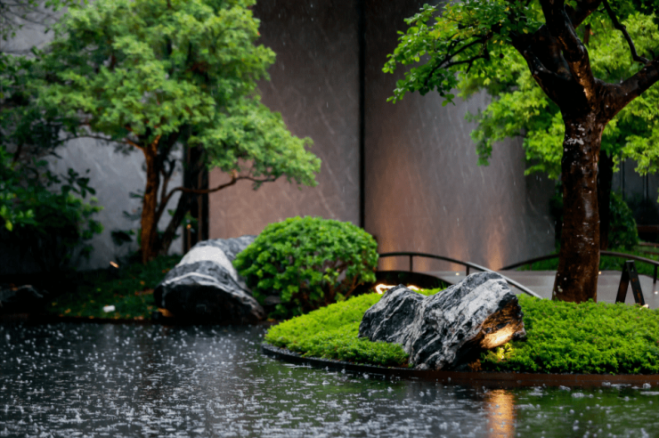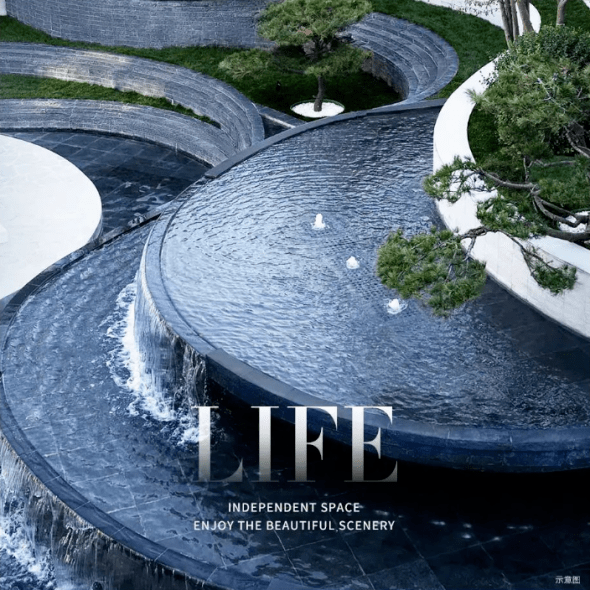 世纪金源·天河源筑还打造了下沉式水景,立体的水景,让业主在家门口就体验到了度假式的生活。