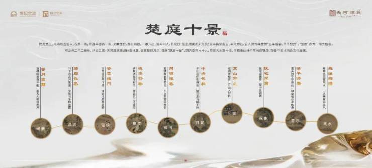 楚庭十景则是世纪金源·天河源筑结合楚庭典故及百年文化气韵,打造的野奢诗意内部景观,包括霁月画兰、归廊长卷、问禅雅卷、境水舒卷、繁云雅门、高山仰止、飞瀑锦绣、中央花林、清平游乐、阮宅闲园等。一种红楼梦大观园的既视感,又有古意又显风雅。
