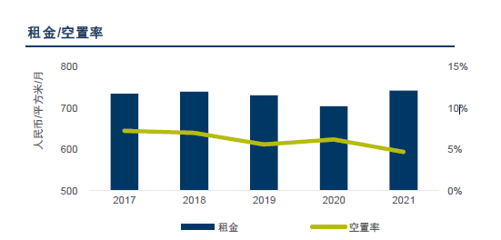 分区域看,珠江新城仍是全市最热区域,是高支付能力的优质企业,如金融及专业服务类企业的租赁落址优选。2021年,片区内项目业主采取更加灵活的租赁策略,态度进取,由此带动市场的活跃度,升级搬迁活动不断。截至四季度,区域租金保持在每月每平方米196.1元,空置率维持5.0%的低位。