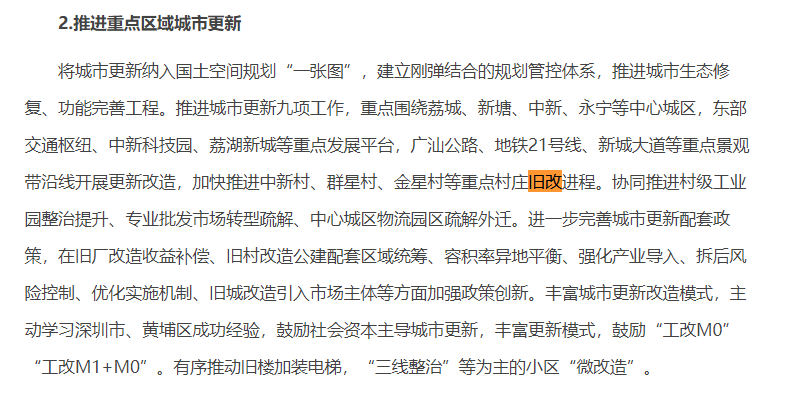 增城区“十四五”规划重大项目(工程包)汇总表更何况,增城在4月出台了一份《增城区关于深化城市更新工作推进高质量发展的实施细则(征求意见稿)》的政策文件,快批、快签、快拆、快建成为其中较大的亮点,下半年的旧改,我们共同期待!