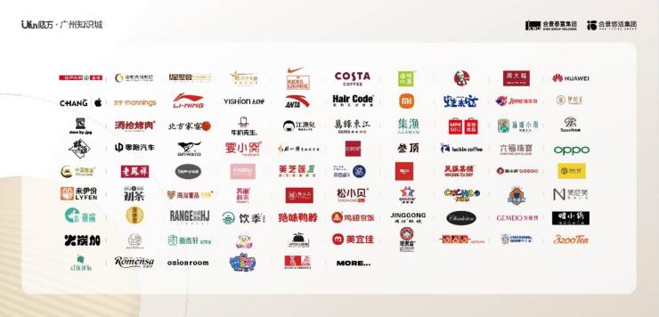广州知识城悠方依据客群多样化需求,精心规划业态组合,目前已引入超70%城市及区域级首进品牌并签约多个优质品牌,包括嘉荣超市、中影大扬影城、星聚会KTV、六个大厨、NIKE KICKS LOUNGE、COSTA、奈雪的茶、KFC、周大福、HUAWEI华为、畅航苹果、万宁mannings、LI-NING李宁、芭曲造型Hair Code、蛙来哒、store by .jpg及酒拾烤肉等,涵盖餐饮、零售、生活配套、儿童及休闲娱乐等业态,将极大地提升所在商圈的消费层级,带动区域经济活力。
