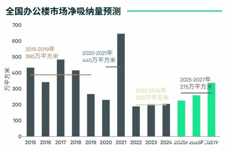 报告预计,2025年国内主要城市办公楼需求边际改善,净吸纳量将录得10%左右的增长。消费与新质生产力继续成为办公楼需求扩张的两大引擎。