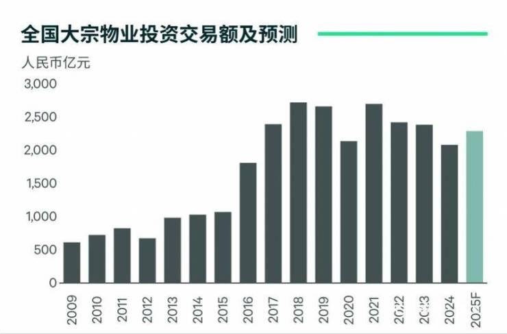 2025年中国大宗物业交易额预计将重回增长通道,同比增长5%~10%。报告指出,尽管投资者对于市场的不确定性及租赁需求疲软仍存担忧,商业地产的投资情绪总体较为谨慎,但更具吸引力的资产价格和持续降息有利于市场交易活跃度的改善。在险资等长期机构资本持续较积极配置的同时,政府平台、企业与个人买家等新兴投资者已经成为不可忽视的买方力量。