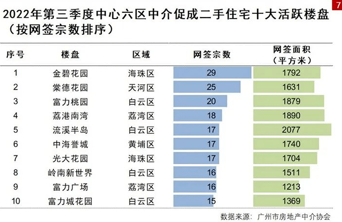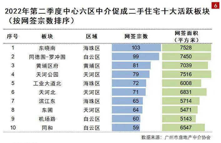 中心六区中介促成的十大活跃板块方面,同德围-罗冲围板块雄踞榜首,网签宗数环比增长17.17%;东晓南板块和黄埔区府板块分居第二位和第三位,网签宗数环比分别回落9.71%和19.75%。